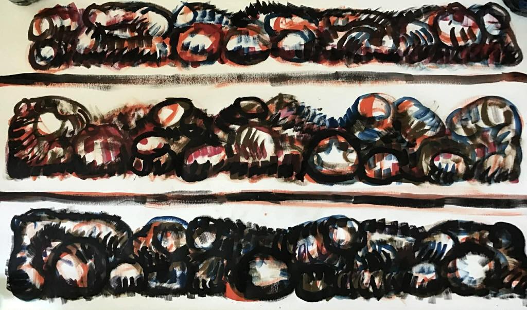 In dieser Zeit wird mir zunehmend klarer, dass Gewalt nur Gewalt erzeugt und dass die Gewaltspirale ein Ende haben muss. Ich sehe es ein, theoretisch. Aber ich sehe keine Lösung in der Situation. In der Vielfalt läge doch so ein immenses Potential, was hätte ich dafür gegeben, mentale Grenzen und Gefängnisse abzuschaffen. Vielleicht ist es das, was die Kunst zu bewerkstelligen vermag. Allerlei Institute, die Regeln aufsetzen, sind gezwungen zu moralisieren, vorzuschreiben, „Vorbild“ zu sein, zu urteilen. Die freie Kunst aber hat die Kraft, zu klären, ohne zu belehren, zusammenzubringen, ohne zusammenzupferchen, zu mischen, zu verschmelzen, zu kitten, ohne Chaos zu stiften – und neue Welten zu erschaffen.